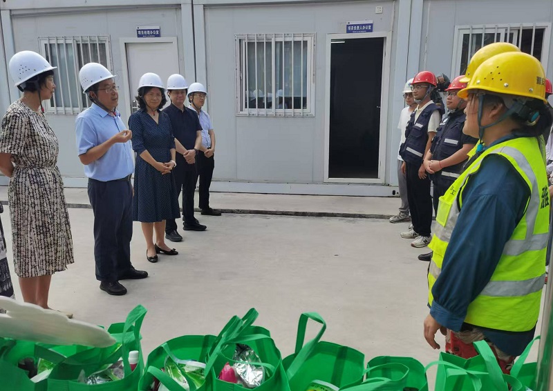 慰問組一行深入項目施工現(xiàn)場,詳細了解了項目的通風(fēng)降溫設(shè)施、防暑藥品配備、清涼飲品供應(yīng)、工人作息時間調(diào)整等關(guān)鍵防暑措施落實情況,并對施工現(xiàn)場的安全防護設(shè)施進行了檢查。