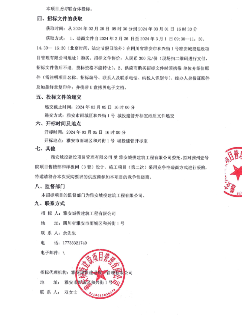 雅州壹號(hào)院項(xiàng)目售樓部和樣板間(3套)設(shè)計(jì)、施工項(xiàng)目(第二次)公告