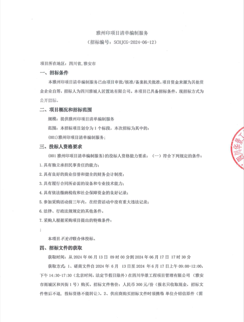雅州印項目清單編制服務公告