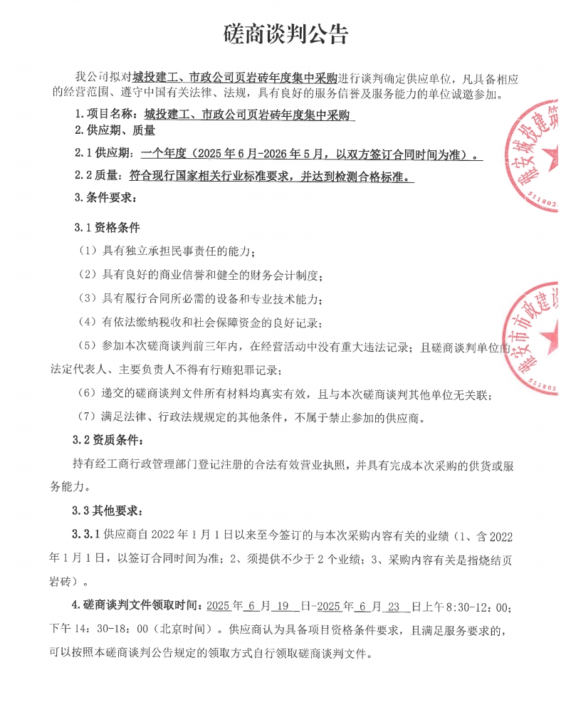 附件1:2025-2026年度頁(yè)巖磚采購(gòu)磋商談判文件