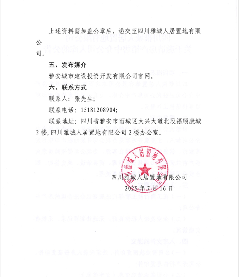四川雅城人居置地有限公司關(guān)于邀請房產(chǎn)銷售中介公司入庫的公告
