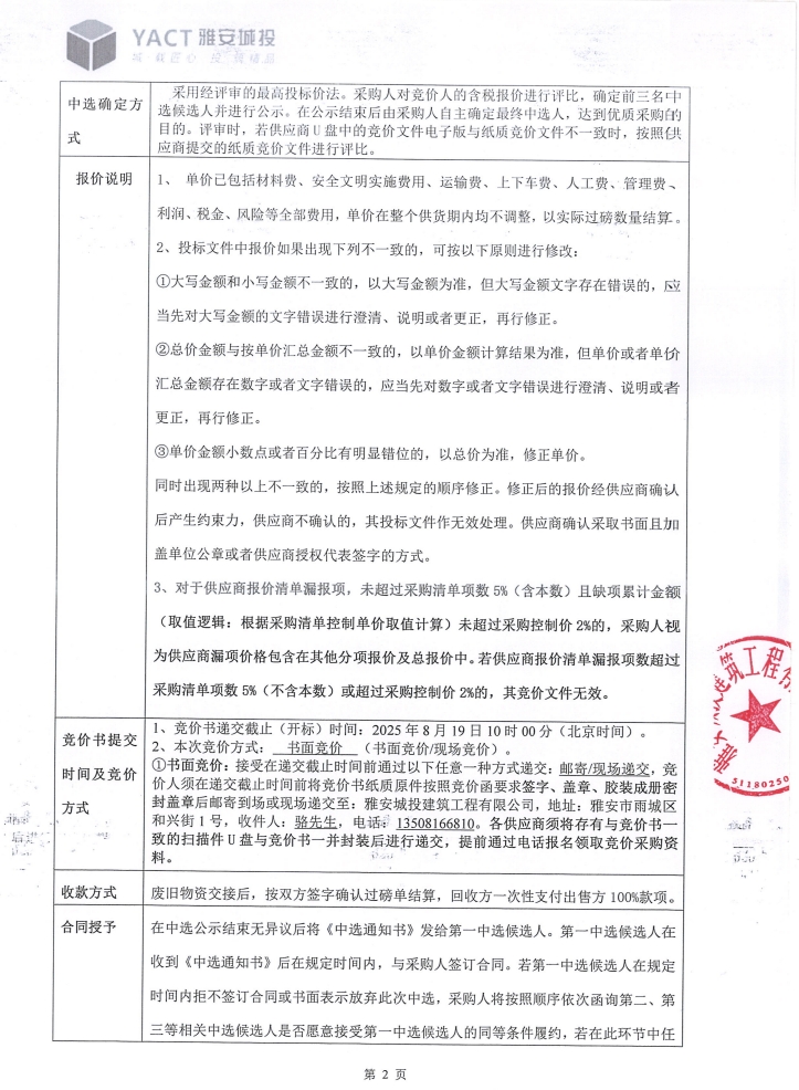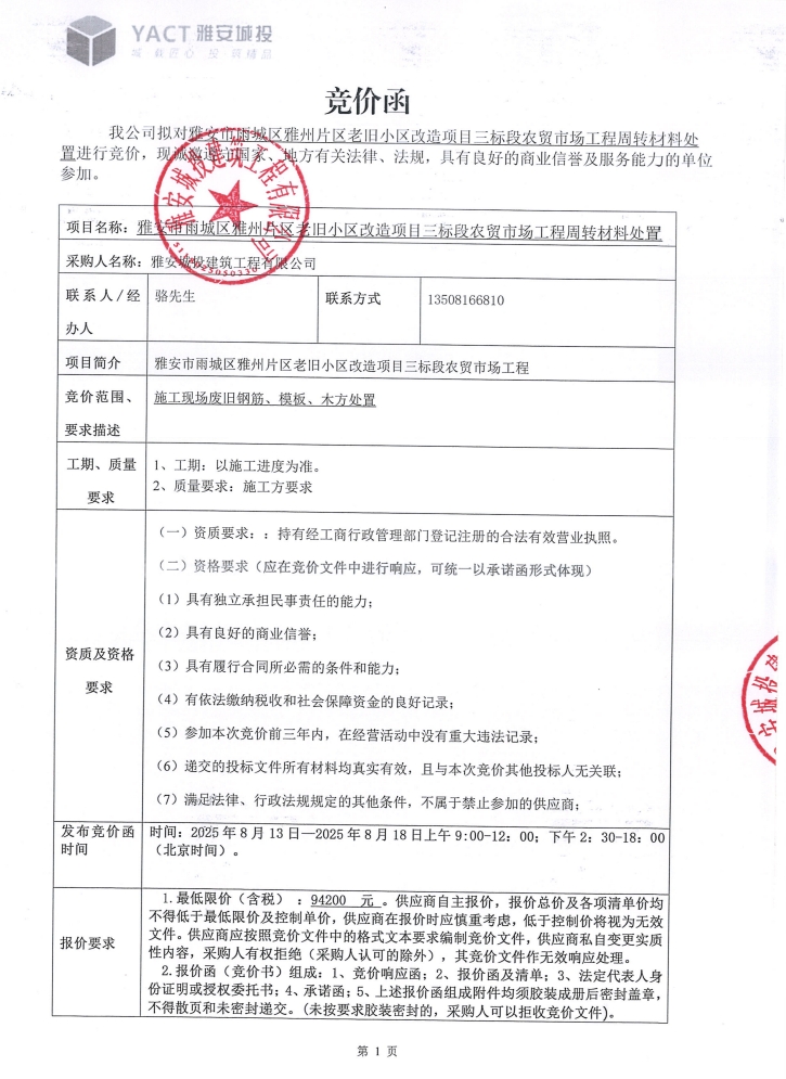 雅安市雨城區(qū)雅州片區(qū)老舊小區(qū)改造項目三標段農貿市場工程周轉材料處置競價公告